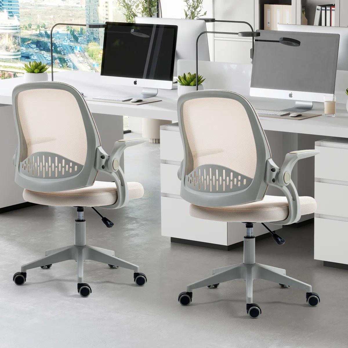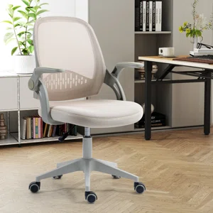 Introducing our mid-back office chair, designed for comfort and functionality. Crafted with breathable mesh to keep you cool during long work hours, this chair is available in four versatile colors—blue, beige, pink, and dark gray—to match any workspace decor.The flip-up arms easily lift to tuck the chair neatly under your desk, saving space and maintaining a clean, organized environment. With a supportive foam cushion and a SGS-tested, 3-level gas lift for smooth height adjustments, this chair ensures lasting comfort throughout your workday.Built with a durable nylon five-star base and quiet-rolling PU casters, it offers enhanced stability and noiseless mobility. Supporting up to 250 lbs, this chair is perfect for both corporate and home offices. Simple, practical, and packed with essential features—it’s the ideal choice for your everyday needs.